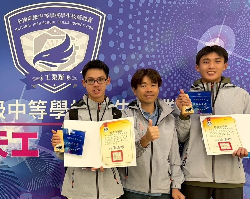 獲獎同學:機電三甲 邱靖堯(左一)、蔡建志(右一)